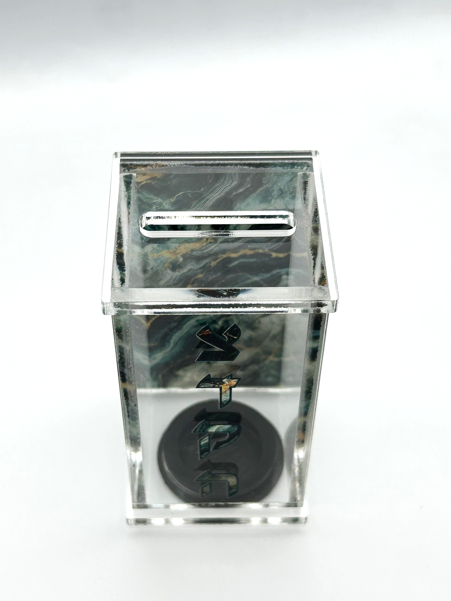 Personalized Tzedaka box with Mirror for Tefillin bag - Charity Pushka - Engrave your name - Perfect Bar Mitzvah gift - Acrylic - Marble - Green